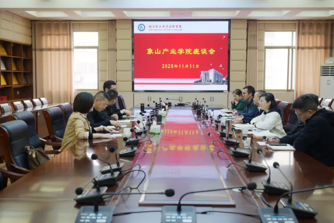 2025年11月11日上午,湖南理工职业技术学院在求实楼机关党员活动室举行象山产业人才学院交流座谈会,热情接待象山县人力资源和社会保障局副局长叶承超一行。校长李科,教务处、招生就业处、智能制造学院、新能源学院负责人等共同参与。会议由副校长何瑛主持。
