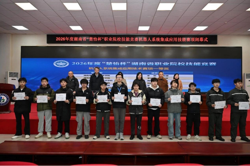 2月7日,为期3天的2026年度湖南省“楚怡杯”职业院校技能竞赛高职组机器人系统集成应用技术赛项在我校圆满落下帷幕。作为本次赛项的承办单位,我校以高度的责任感精心组织、周密部署,为全省各参赛院校搭建了专业、公平的竞技交流平台,赛事组织工作获省赛办、裁判组及各参赛院校一致认可。