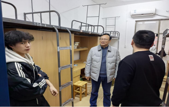 随后,王凤斌一行深入学生宿舍,实地查看学生住宿环境和设施设备运行情况,并与返校学生亲切交谈,详细询问同学们的假期生活、返校行程、住宿适应情况以及新学期的学习规划和目标设想,鼓励同学们尽快调整状态,以积极向上的精神面貌迎接新学期的学习生活。