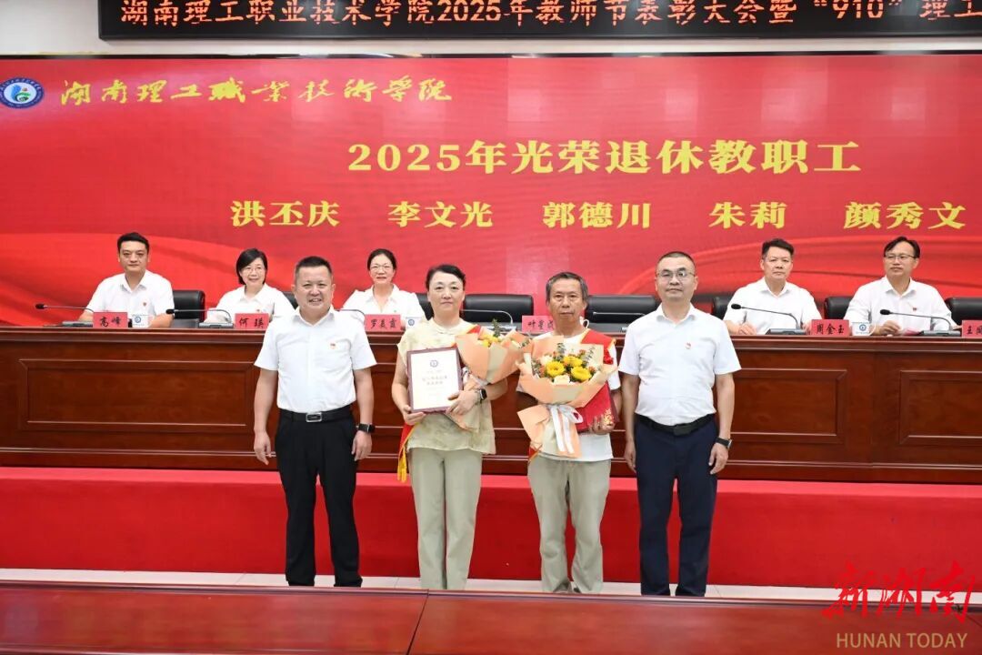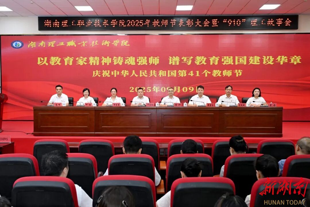 湖南日报·新湖南客户端9月12日讯(通讯员 朱彬 朱菁菁)为弘扬尊师重教优良传统,激励广大教师践行“为党育人、为国育才”初心使命,9月9日下午,湖南理工职业技术学院在图书馆报告厅举行庆祝第41个教师节表彰大会暨“910”理工故事会。校党委书记叶星成,党委副书记、校长李科及全体党委班子成员出席,全体教职工、离退休教职工代表、学生代表等参加会议。