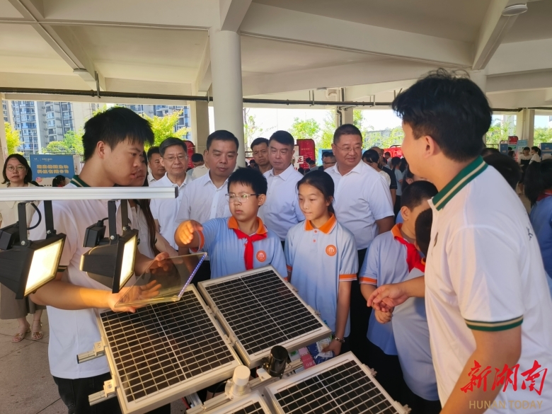 湖南日报·新湖南客户端9月18日讯(通讯员 余银萍 杨昉)9月17日上午,2025年全国科普月湘潭主场活动在湘潭大学附属实验学校演艺大厅启幕。湖南理工职院科学技术协会杨昉老师率新能源学院学生科创团队雷坪桦、黄郴锋、刘姿言、文泽四位同学,带着自主研发的“风光互补发电系统”亮相现场。该展台实力“出圈”,成为全场焦点。