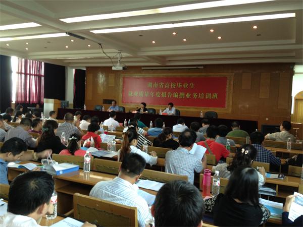 本次培训由湖南省教育厅毕业生就业办公室和湖南省大中专学校学生信息咨询与就业指导中心主办,湖南科技大学招生就业处承办,来自全省100多所本、专科院校的200多位老师接受培训。