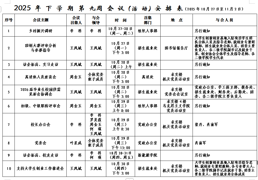 2025年下学期会议安排表(第九周)