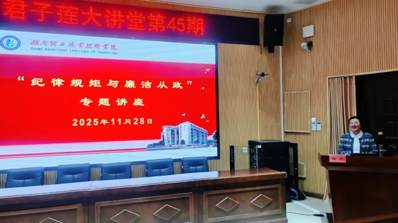 为全面强化党员干部的纪律意识、规矩意识与师德师风修养,近日,湖南理工职业技术学院举办党员干部培训班,学校纪委副书记、纪检监察处处长张琼应邀作“纪律规矩与廉洁从政”专题授课。