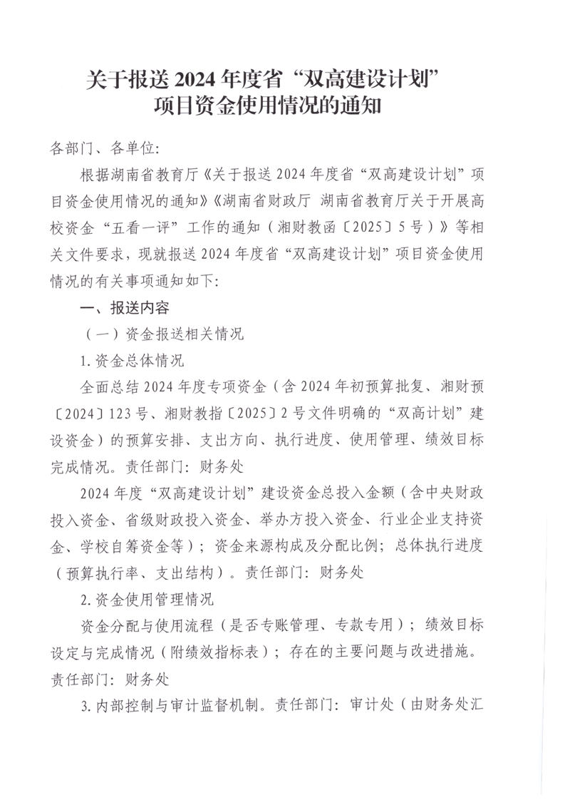关于报送2024年度省“双高建设计划”项目资金使用情况的通知