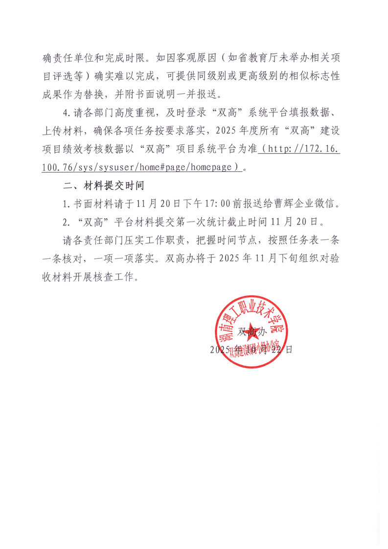 关于开展2025年度“双高”建设项目工作总结暨绩效考核的通知