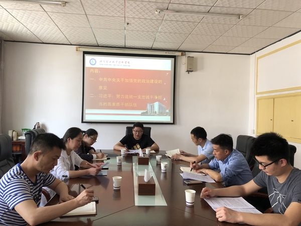 按照学校思政半月谈工作安排,4月9日上午,国资处党支部组织专题学习,集中学习了《中共中央关于加强党的政治建设的意见》和习近平总书记重要文章《努力造就一支忠诚干净担当的高素质干部队伍》等内容。会议由支部书记罗毅同志主持,校党委委员、副校长洪丕庆同志以普通党员身份参加学习。