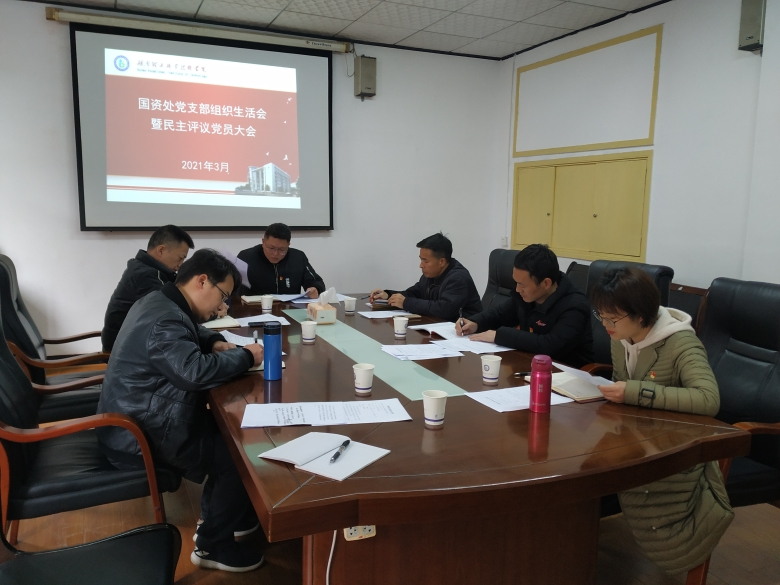 3月9日上午,国资处党支部在求实楼三楼会议室召开组织生活会暨民主评议党员大会,会议由支部书记罗毅同志主持,支部全体党员、群众代表参加会议。