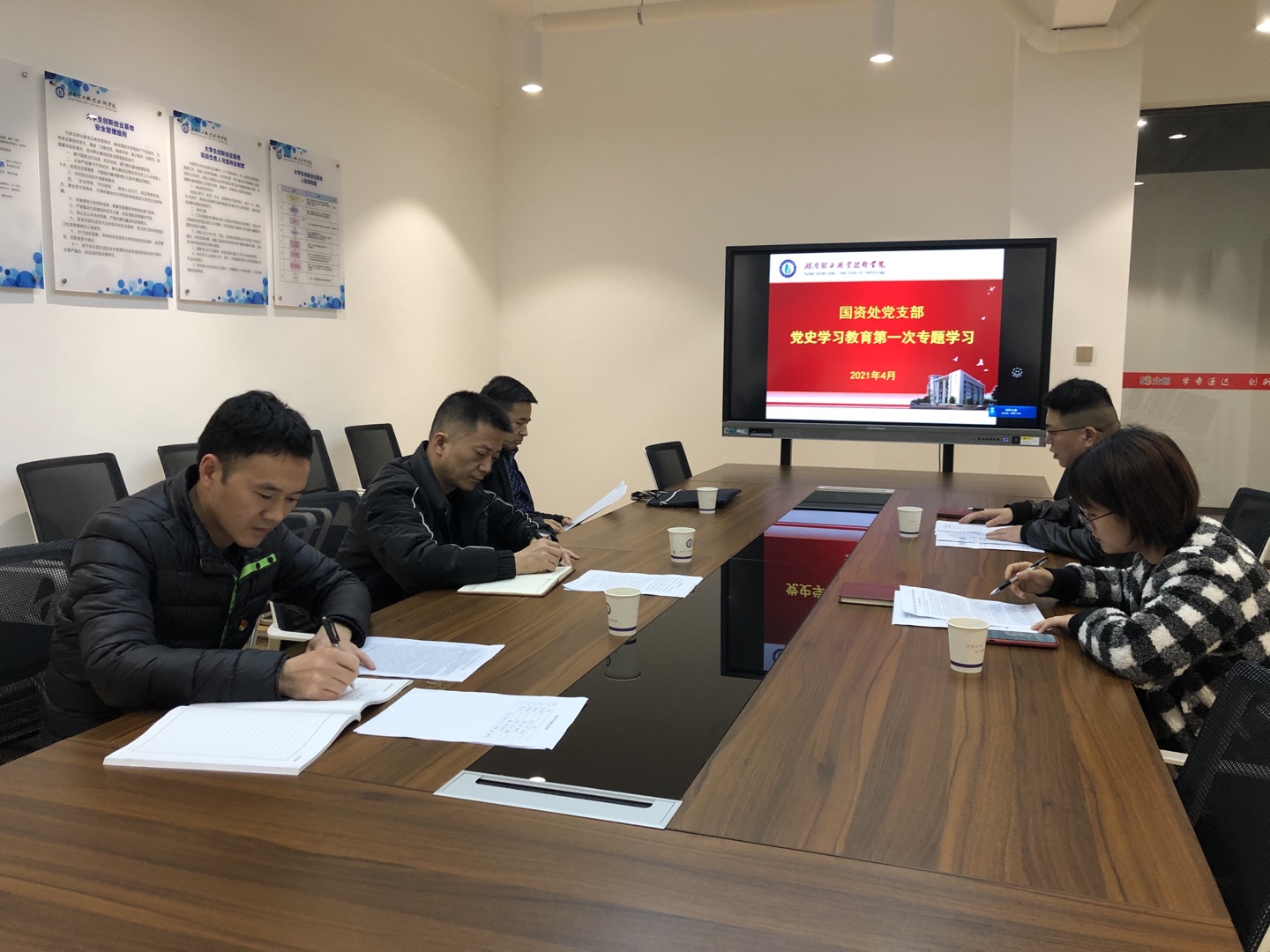 4月13日下午,国资处党支部在双创基地共享会议室开展党史学习教育“学史明理”专题学习。