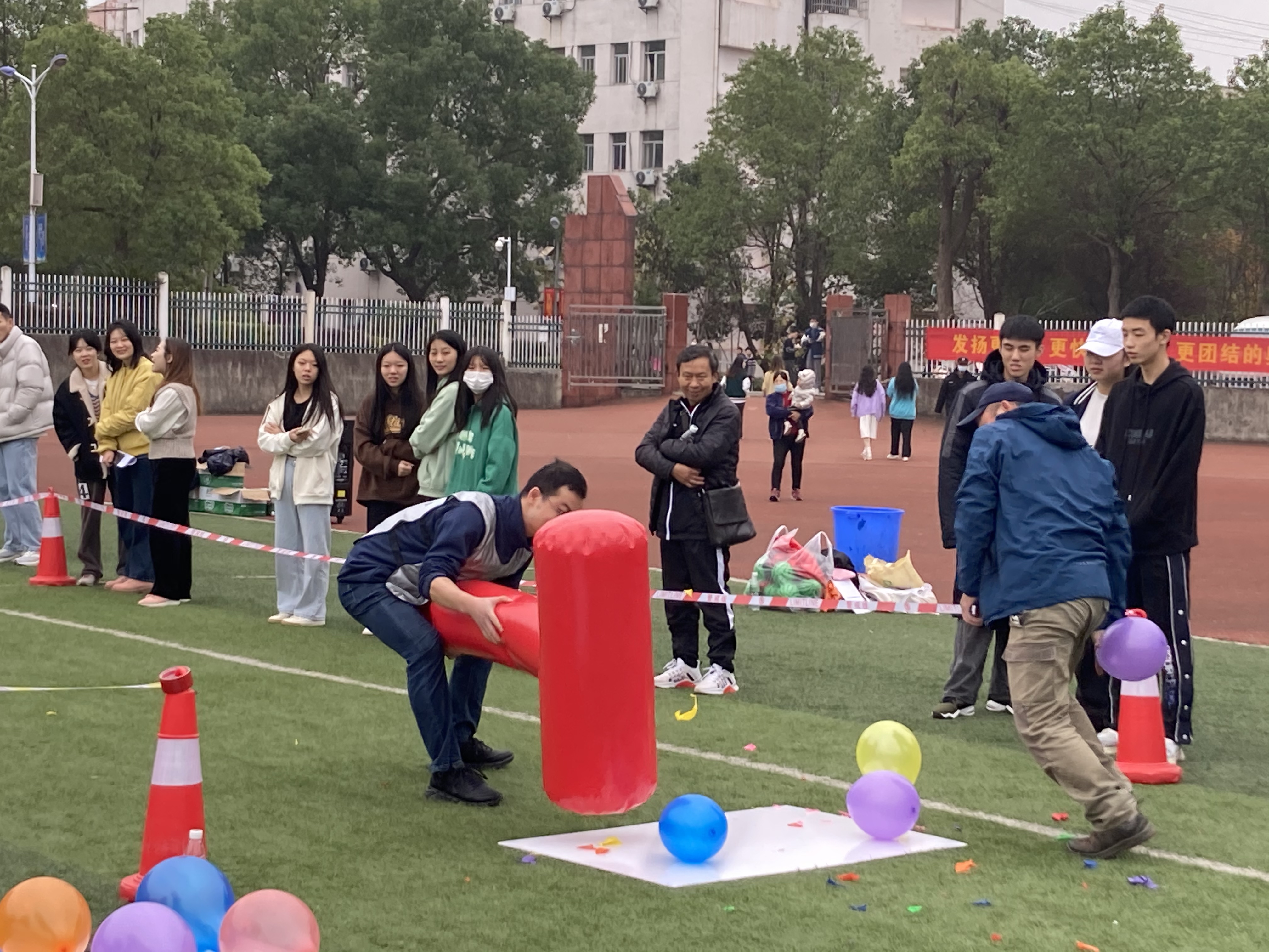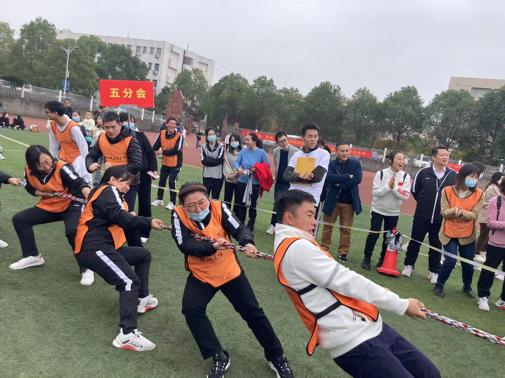 11月24日,“我运动,我快乐,我健康”2022年教职工趣味运动会在田径场顺利开赛。本次趣味运动会共设“袋鼠运瓜”、“一锤定音”、“两人三足”、“拔河”四个项目。参赛队员活力满满、配合默契,齐心协力共同完成各项比赛。