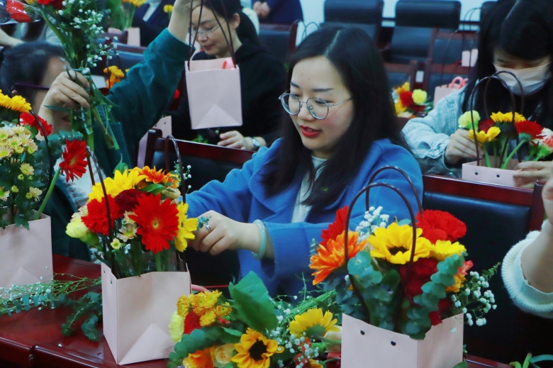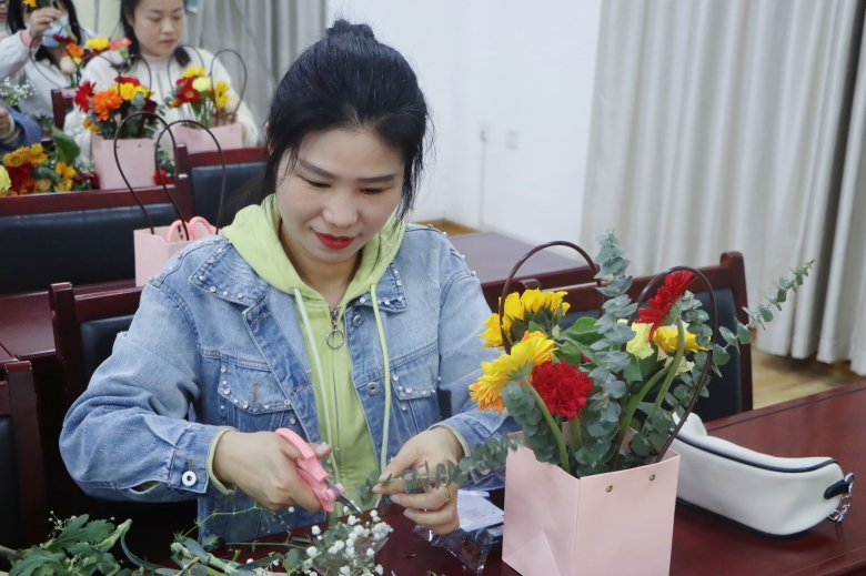 春风有信,花开有期。为迎接第113个“三八”国际妇女节,展示我院教职工健康向上、积极乐观的良好精神风貌。3月9日,院工会、财务处联合建行岚园支行开展“诗情花意,幸福绽放”主题插花活动,邀请教职工赴一场春天的约会。