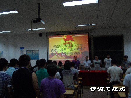 为弘扬“爱国、进步、民主、科学”的五四精神,使同学们树立起“我为评估做贡献,我与学院共奋进”的良好意识。6月13日,资源工程系在三教多媒体一召开2012-2013年“五四表彰”暨人才培养评估动员大会,参加此次会议人员有:系副书记副主任胡志军老师、系团总支书记陈柏舟老师、系学管干事朱礼老师、系辅导员郭赟登老师,以及受表彰的共青团员及学生干部出席了本次大会。