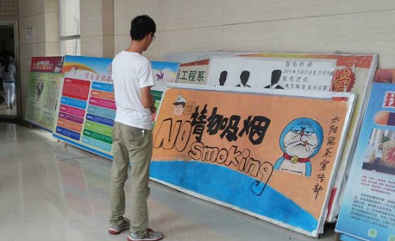 首先,系部在微信平台等新媒体中发出了“关爱健康,远离烟草”的微倡议。同时,在学生中还开展了“创建无烟校园”的微话题讨论,引起了广大师生的积极关注;其次,利用手绘漫画等形式在宣传栏里生动形象地警示吸烟的危害,劝告同学们珍爱生命、远离香烟,共同营造健康无烟的清新校园环境;通过一系列的禁烟宣传和开展的禁烟活动,同学们提高了认识,表示要加强自控力,用行动抵制烟草的诱惑,自觉遵守学校关于禁止公共场所吸烟场的规定,勇于与吸烟的不良习惯和行为作斗争。