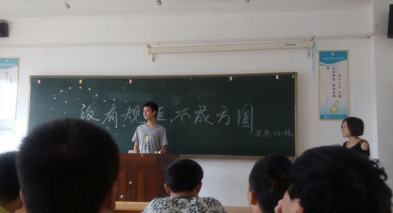 该班自组建以来就确立了建设“示范班级”的目标,班会就围绕这个目标展开。各班干部先后走上讲台,就本职工作和班级管理发表自己了认识与看法。班干部能够与同学相互协作,配合完成院、系各项工作任务;每一个人都遵守纪,团结向上,培养优良的班风;同学们也纷纷上台畅所欲言,特别指出了近期出现的不良现象,提出了改正的办法,支持和配合老师,一起建设示范班级,为班级荣誉添彩。