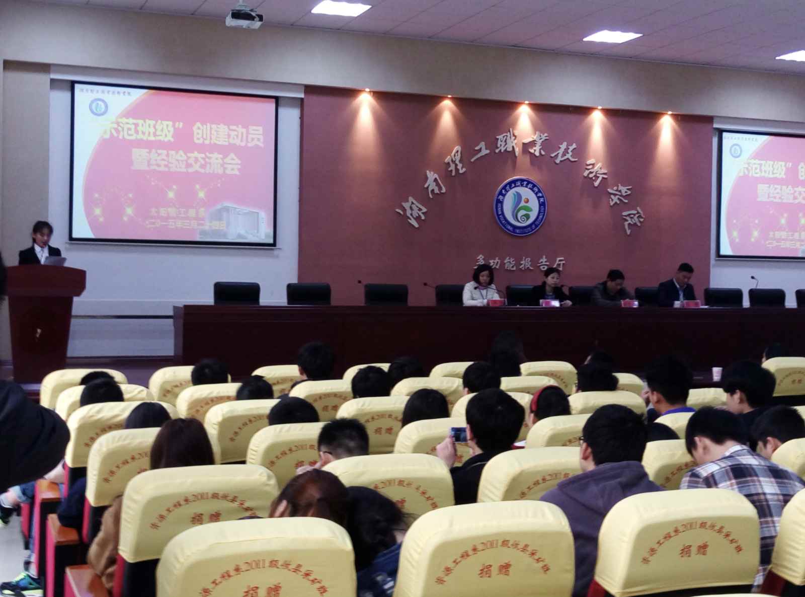 随后田野副书记老师围绕本年度“示范班级”创建作了动员报告,他首先宣读了太阳能工程系示范班级创建方案,同时,要求各班制订切实可行、内容详实的活动方案,用更高标准要求自己,并将每一项活动落实到实处,鼓励创建活动体现班级特色,努力形成一种积极向上,争先创优的氛围。