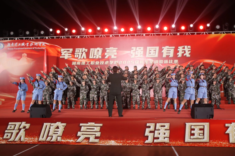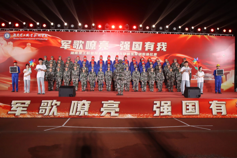 随着舞台灯光骤然点亮,一队学子昂首登台,一曲《中国军魂》如惊雷破空。在“红旗飘飘军号响,剑已出鞘雷鸣电闪”的铿锵歌声中,整齐划一的动作、坚毅炽热的眼神,将铁血军魂的豪迈气概诠释得淋漓尽致。现场气氛瞬间点燃,掌声与歌声共鸣,激荡起在场每个人心中的家国情怀。