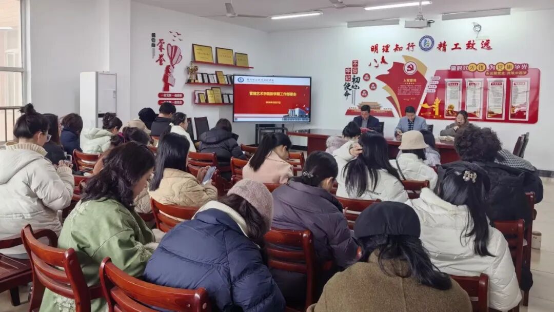 2月27日下午,管理艺术学院在党员活动室召开2026年新学期开学工作部署会议。学院全体教职工参加会议,会议由学院负责人夏红雨主持。