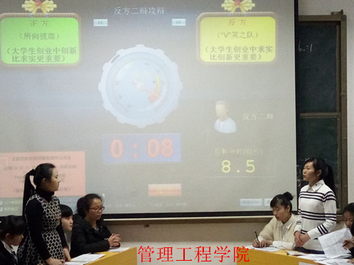 3月17日晚7点半,管理工程学院学习部在3教510教室举办了第九届以“青年创业”为主题的辩论赛。出席本次活动的嘉宾有团总支书记李婷、第十二届学生会主席团全体成员以及学联主席团全体成员。