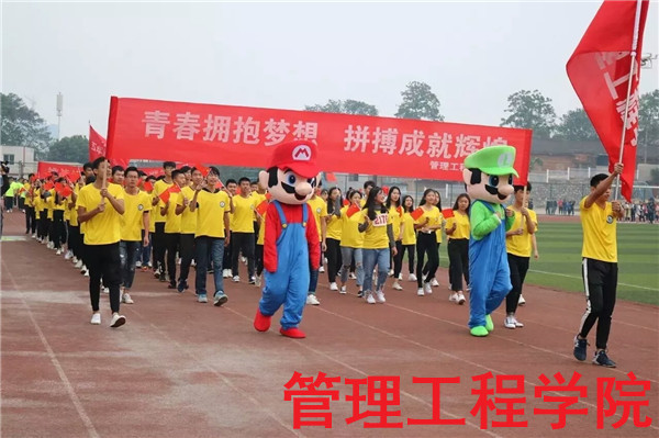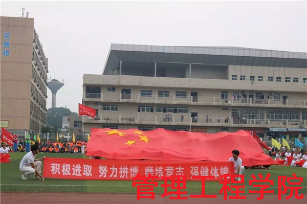 为了这次运动会,管理工程学院精心准备了震撼人心的舞蹈节目《梦幻青春》。开幕式上,《梦幻青春》作为压轴表演精彩上场。我院表演方队分为两组扇子组和国旗组。在阳光下,扇子组穿着耀眼的红衣,舞动着艳丽的红扇,似一片片花朵的海洋,尽情的在摇摆,正如青春肆意的青年们在展现着似火的热情。国旗组穿着整齐划一的白色服装,如奔腾的浪花,以青春的名义,用我们年轻的臂膀扛起民族复兴的重任,在震撼的音乐响时起奔涌成一条跃动的青春洪流,国旗在表演者手中律动,如奔腾不息的黄河水孕育了古老灿烂的华夏文明,为了使祖国母亲——黄河,更好地造福人类,在历史的金卷上书写更辉煌的篇章,您的孩子要把自己青春的热血汇入你激荡的胸怀!最终所有的表演者在鲜艳闪亮的国旗下汇聚。观众们默默无言地伫立着,看着眼前国旗徐徐展开,管理工程学院方队用一腔热血在祖国画卷上描绘年轻的篇章,表演结束后,现场爆发出热烈的掌声,每个人内心无比激烈地跳动,无不沉浸在一场青春的盛宴中。