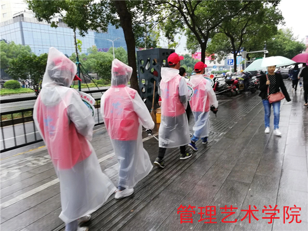 此次志愿活动内容为在建设路口进行文明交通劝导,志愿部新成员不畏风雨,身穿红色马甲,手持文明标牌,告诫行人文明过马路一定要走斑马线。她们不断的指引交通,拾起地上被遗落的垃圾,为城市的文明奉献着自己的一份力量。