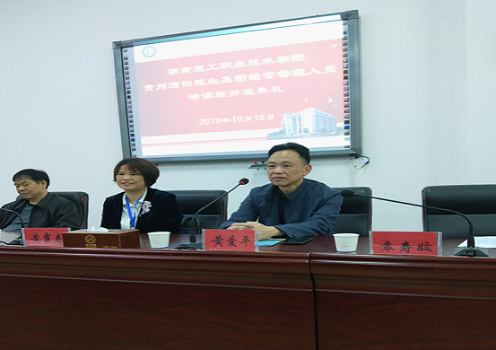 学校副校长黄霞春教授、贵州湾田煤业集团副总经理黄爱平、人力资源部部长曾新国、财务部副部长袁寿姣出席开班仪式,仪式由继续教育学院院长冯向阳主持。