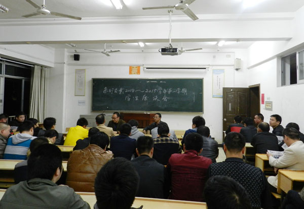 2014年11月11日晚上7:00,矿业工程系、继续教育部在三教学楼204教室召开了高职和成教的采矿专业学生座谈会。会上,继续教育部副部长张访问首先向学生宣布了省教委关于今后要求对学生的学习空间、顶岗实习和毕业设计进行抽查等相关政策,并对成教学生毕业设计的要求和答辩时间作了说明。之后,回答了学生关于学习上的一些问题。 会后,参加会议的贺岳奇专业老师又组织湘煤2121班的学生就毕业设计的要求和学生进行了交流(贺银花)。