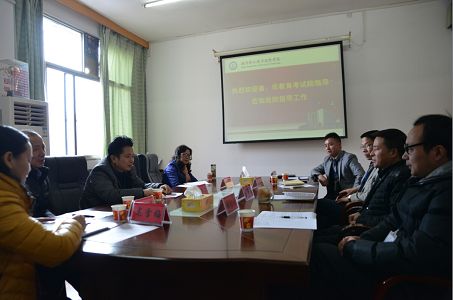 首先洪副院长代表学院党委行政致欢迎词,对省、市教育考试院领导来我院检查指导工作表示热烈的欢迎。接着继续教育处范海军向专家组汇报了近几年来自考助学站的办学条件、招生情况、教学管理、学生管理等情况,特别对生源变得情况进行了说明。最后冯向阳处长就自考助学站今后如何开展工作向专家组做了汇报。