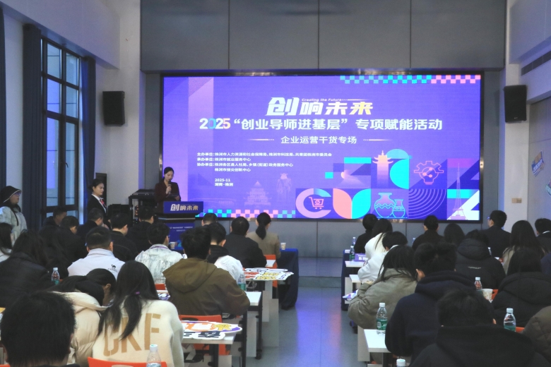 11月21日,“创响未来”主题活动在株洲天元区人力资源产业园一楼路演厅隆重举行。本次活动不仅是一场面向社会创业者的盛会,更为我校怀揣创业梦想的学子们提供了一个与行业大咖面对面取经的宝贵机会,开启了通往创业实战的窗口。活动特邀张帆、戴领、刘飘三位资深导师亲临现场,为嘉宾带来了精彩的专题讲座。