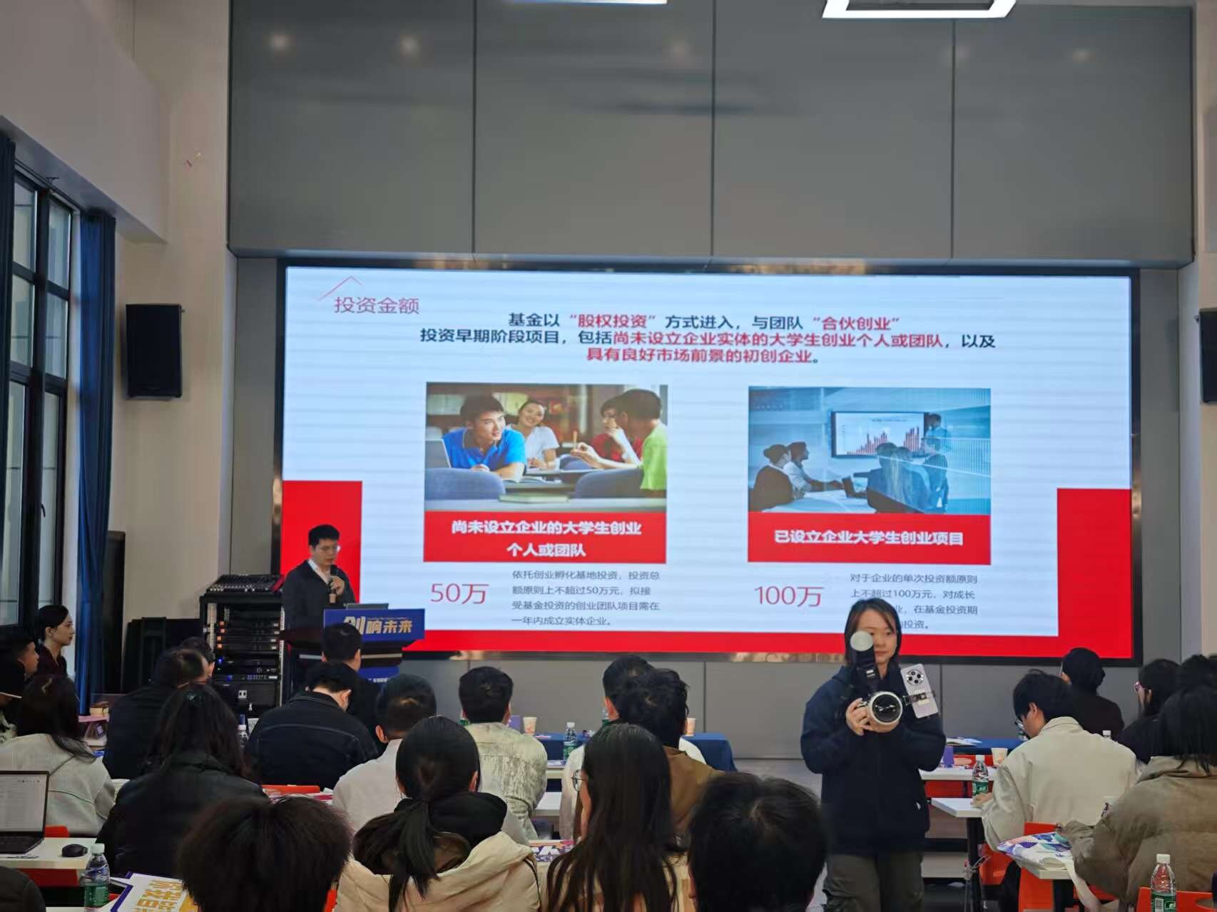 首先是张帆导师带来《省大学生投资基金政策推介暨创业初期困境剖析》的讲座。张帆凭借其深厚的金融背景与十余年股权投资经验,对省大学生投资基金的申请条件、扶持方向及政策优势进行了系统梳理与解读,为有志于创业的同学指明了获取资金支持的有效路径。同时,他结合自身主导的多个早期项目案例,深刻剖析了创业初期在团队构建、市场定位、现金流管理等方面普遍面临的现实困境,并提供了宝贵的应对思路与务实建议。