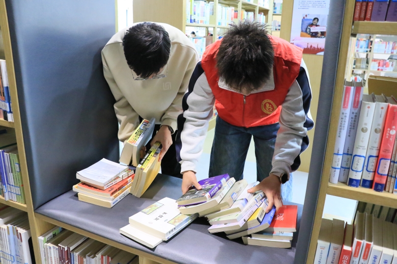 活动现场,志愿者们分工明确、协作有序,化身“书香守护者”。有的按照分类标准,仔细梳理书架上的各类图书,将错架、乱架的书籍一一归位,让原本杂乱的书架变得整齐有序;有的手持抹布、拖把,认真擦拭书架、桌椅、门窗,细致清扫图书馆的每一个角落,清除卫生死角,为读者营造了干净、整洁、舒适的阅读环境。