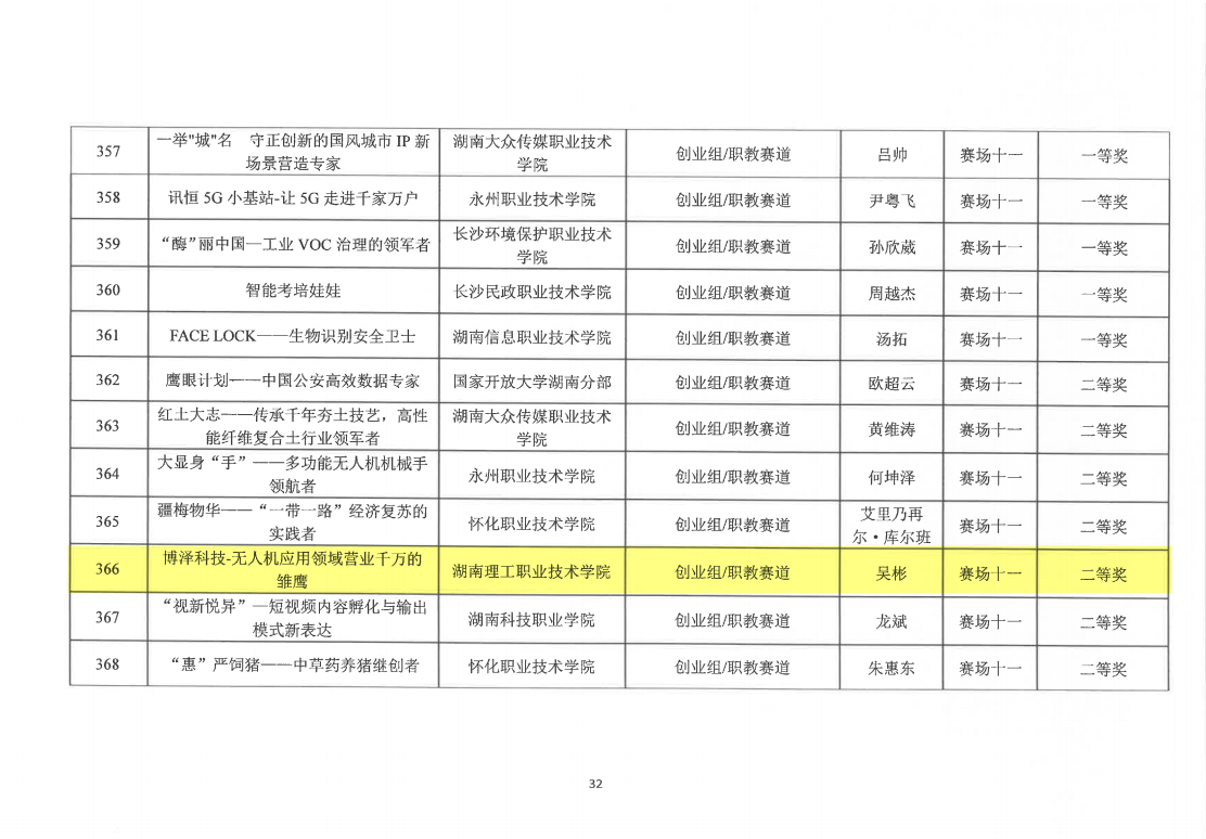 据悉,本届大赛以“我敢闯,我会创”为主题,设立了高教主赛道、“青年红色筑梦之旅”赛道、职教赛道、产业命题赛道和萌芽赛道,参赛项目涵盖新工科、新医科、新农科、新文科等多个领域。大赛共吸引了全省122所高校、36.8万个项目、137万人次报名参赛,参赛人数和规模创历史新高。我校突破重围,“博泽科技——无人机应用领域营业千万的雏鹰”项目获得职教赛道创业组二等奖。(思政教育工作部 沈亚 徐军)