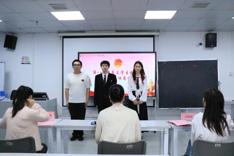 刘希悦老师为活动做总结讲话,对于此次活动提出三点。第一对竞选同学的评价与肯定,对于同学们的表现认可、精神肯定、结果态度的认可。第二对于学生会定位与选拔标准,学生会是学院联系同学的桥梁纽带,践行“四自”(自我教育、管理、服务、监督)的平台,也是学生施展才华的舞台。选拔应兼顾能力与态度、言谈与实干,同时着眼团队长远建设,而非仅看单一维度。第三关于后续安排与对新成员期望,团总支与本届主席团将结合机试、笔试、面试、日常考察及岗位需求,评议确定新一届干部名单,竞选者需关注通知、耐心等待。希望同学们尽快融入集体,传承优良作风,保持学习与创新,成长为老师的助手、同学的贴心人。同时展望新一届学生会,相信能为学院学生工作注入新活力,实现薪火相传。