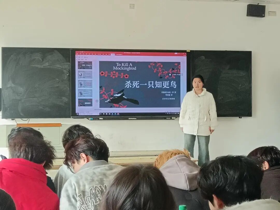 陈珍珠同学选择分享哈珀·李的文学经典《杀死一只知更鸟》。她对小说中深刻的正义主题、道德勇气及种族平等议题进行了层层剖析,并联系当下社会现实,激发了在场听众对公平、良知与人性多样性的深入反思和多元探讨。