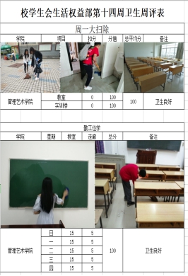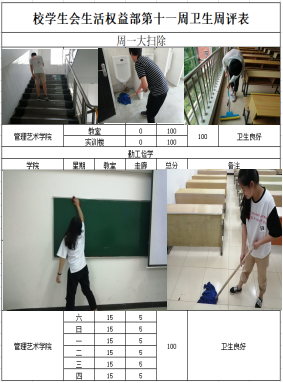 大扫除:每周一、周三的大扫除和周二、周四的维护性大扫除可以将日常清扫难以发现的卫生死角进行彻底的清扫,深层次提高学校卫生质量。